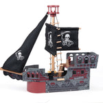Tailored for explorers of imaginary seas, this wooden ship with black sails adorned with a skull and crossbones strikes fear into the hearts of all enemy ships.
