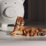 This Papo figurine realistically and gently depicts a lying tigress nursing her baby: detailed tabby fur, a restful posture, and a moving maternal bond. A unique piece to complete a collection of wild animals, invent tender stories, or educate children about the lives of endangered big cats.